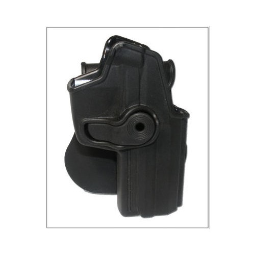 Description: Made of durable, high-tech, black polymer, these right-handed holsters use a unique patented retention system with a zero time to disengage feature. Simply depressing the lever allows for instant removal of the firearm.