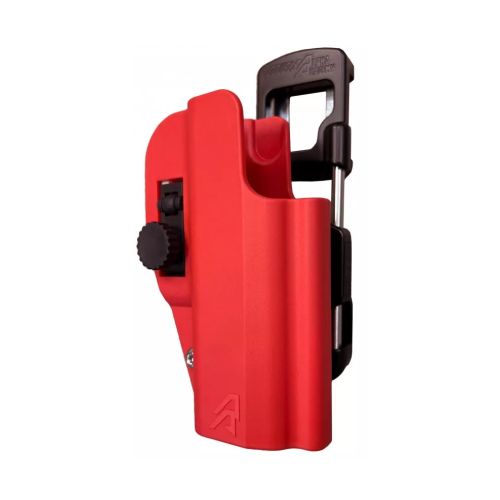 The Hanger of the DAA MAX Holster is made of aluminum and steel, to create a strong and rigid hanger that will keep your holster in place – while allowing for a huge range of adjustability. The central ball joint assembly can slide up or down a pair of stainless-Steel rods, giving shooters a wide range of height adjustment. The ball-joint enables you to tilt and rotate the holster to your chosen position, and locks it firmly in place using the same tried and tested clamp design borrowed from the Alpha-X Race Holster. The large M6 lock-up bolt can be accessed while the holster is worn, allowing you to adjust the holster/pistol position while it’s on your body.